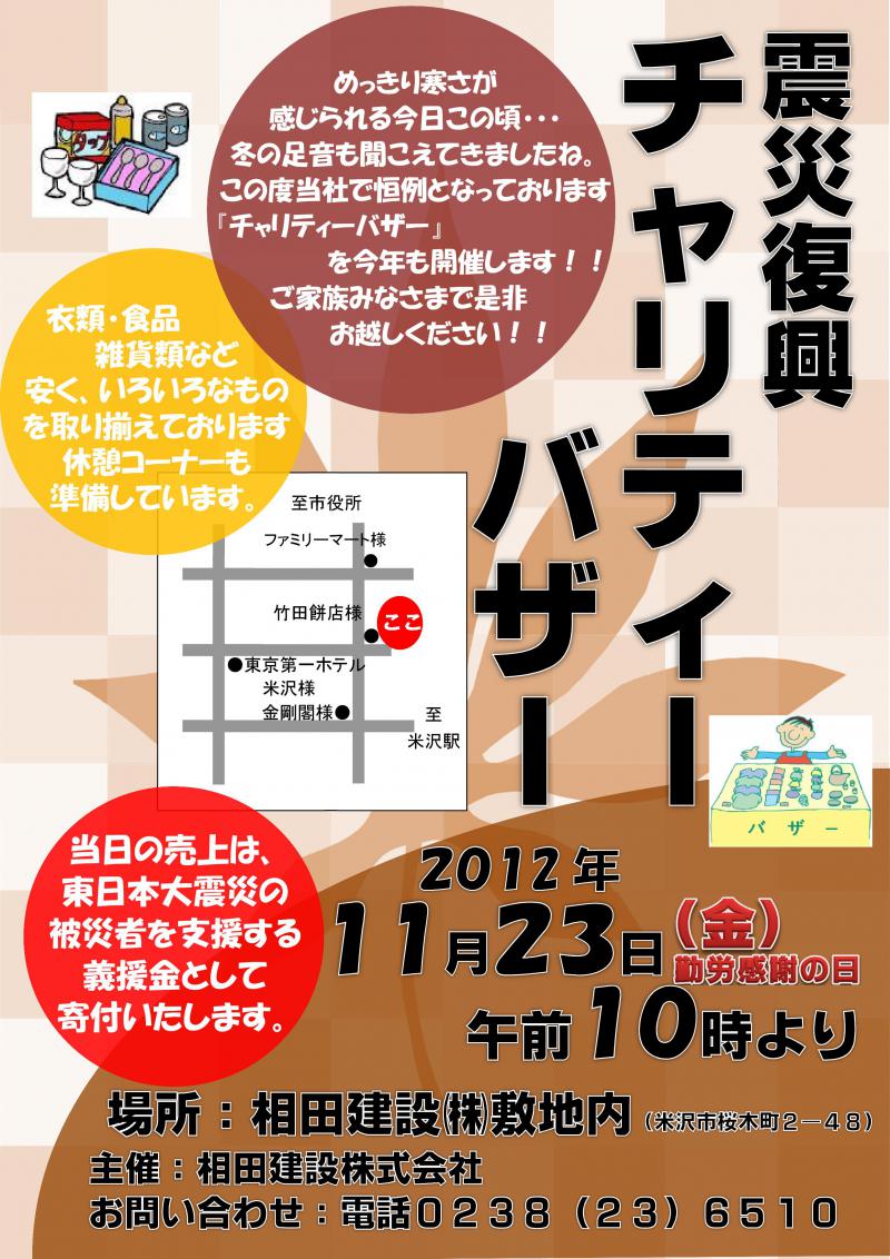 ▼震災復興チャリティーバザーのご案内