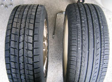 写真は、左:NEWスタッドレス、右:夏タイヤ。