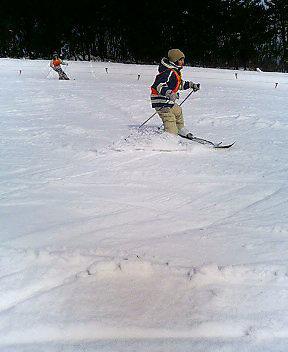 今日の練習のメインだった横滑りのスキー操作を上手く使って、あまり力まないでも滑られるように練習していきましょう。