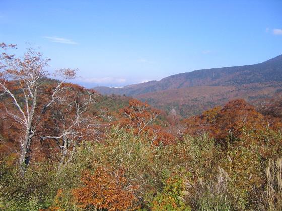 置賜盆地の方を望んでいます。この辺の紅葉は終わりかけと思われます。