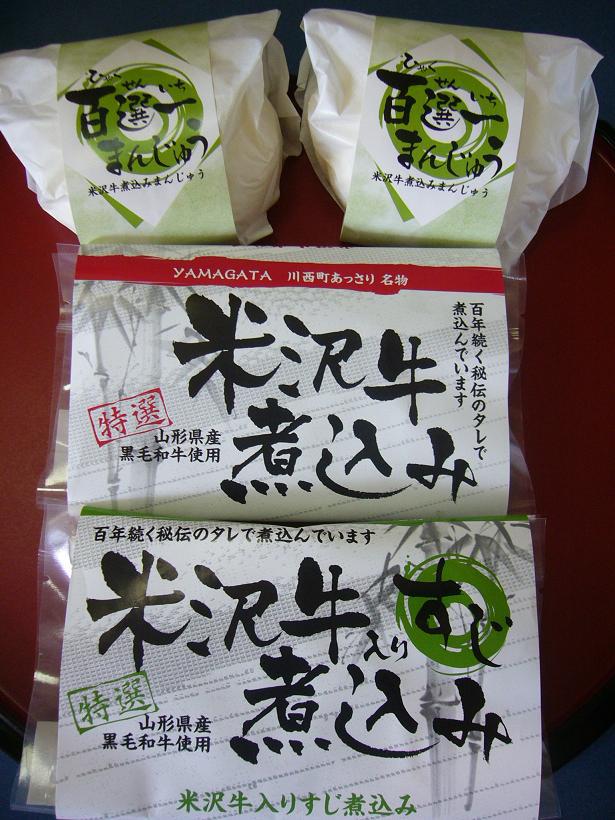 左の写真は、牛煮込みまんじゅうと牛煮込み、牛すじ煮込みのセットです。価格は2,405円です。ぜひ、ご利用ください。