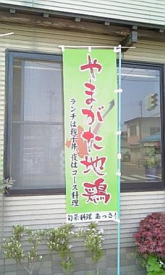 さて、店の前に写真のとおり、「やまがた地鶏」ののぼりを飾りました。早速、お客様からの反応があり、うれしく思っています。