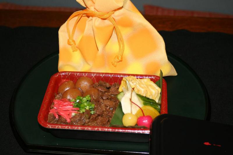 さて、本日紹介するのは、写真の新商品「山形弁当・姫のごっつを」です。この弁当は、当店自慢の伝統100年の牛すじ煮込みをふんだんに取り入れ、山形の旬の食材を食材を入れた弁当です。なぜ、姫の・・?? まだ、試験栽培しか行われていませんが、お米を「つや姫」にしようかと思っていまして、命名したものです。山形名物の玉こんにゃくを入っていますよ。価格は1,050円て、前日までのご予約をお願いします。目標は駅弁進出です!!