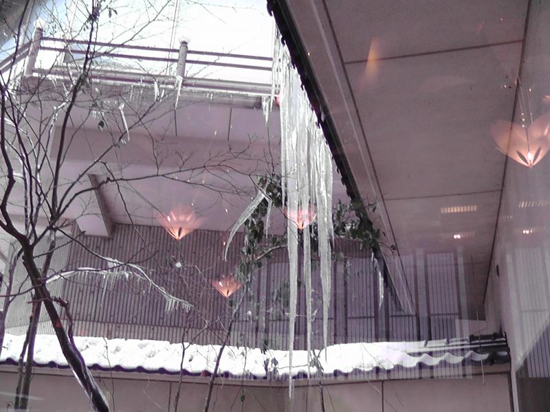 ロビー玄関から見える今年の、つららです。
