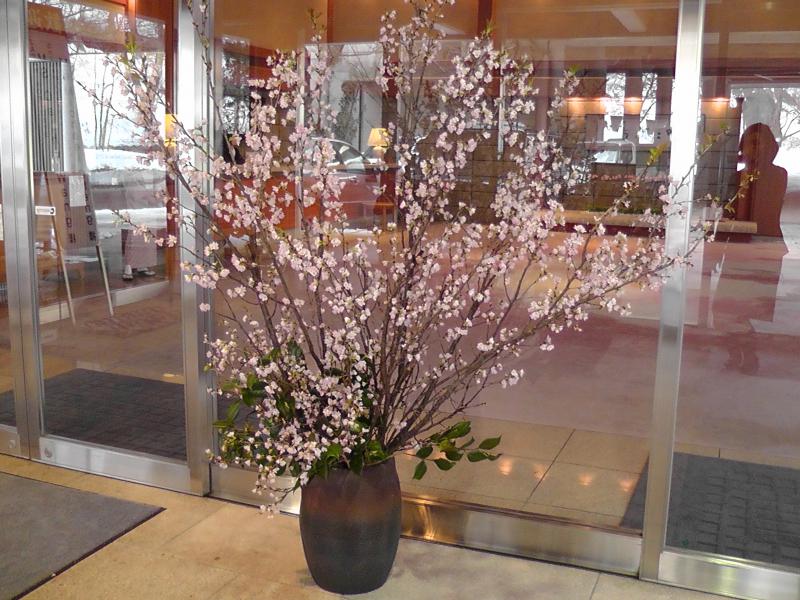 外は極寒ですが、一歩玄関に入れば「桜だー」