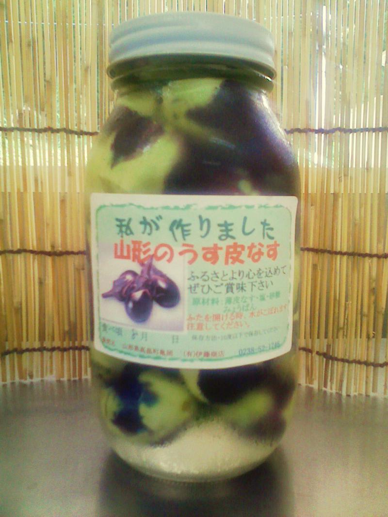 自家製の薄皮なすのビン漬けです。