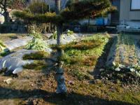 写真の様に、木の根元に一巻きして、シュロ縄などで2〜3ヶ所縛ります。枝分かれのところに巻くのも効果的です。