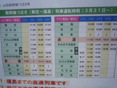 4月12日から、東京、山形、新庄間で運転を再開しました。 運行本数は限られていますが、復旧が目にみえてきました。 赤湯駅も賑わいが増してきました。 がんばろう!東北 4月12日から暫定ダイヤです。 |