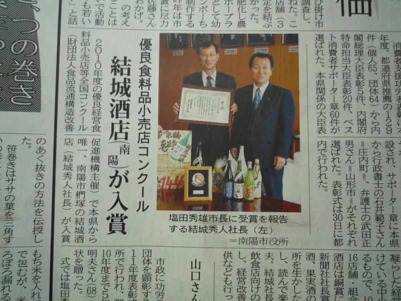 日本経済新聞社社長賞を受賞し、このほど、塩田南陽市長へ