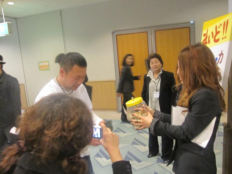 一緒に見に行った先輩はチャリティー募金をしていました。