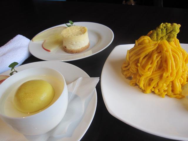 大根のチーズケーキ・スウィートポテトプリン・南瓜のモンブランの写真