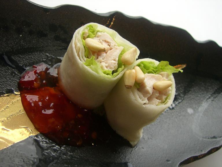 蒸し鶏とレタスの生春巻きです。スウィートチリソースがよく合います。