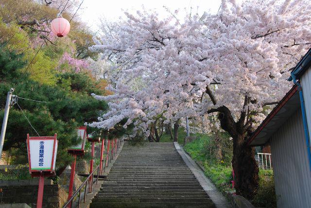 写真は烏帽子山千本桜の開花を告げる桜の木です。
