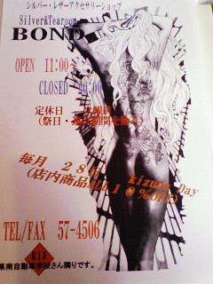 店内商品すべて10%OFF!!!日頃のお客様への感謝を込めてBONDからのご奉仕企画!!この機会をお見逃しなく!皆様の御来店、シルバー君と共に心からお持ちしておりやすm(_ _)m