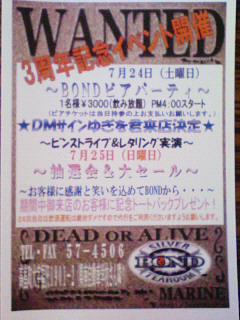 ボンドをオープンして今月で3年をお陰様で迎えます〓これも一重に、みなさんが足を運んで頂いたからこそ今こうして3周年を迎えられると実感するとともに感謝の気持ちでいっぱいです〓