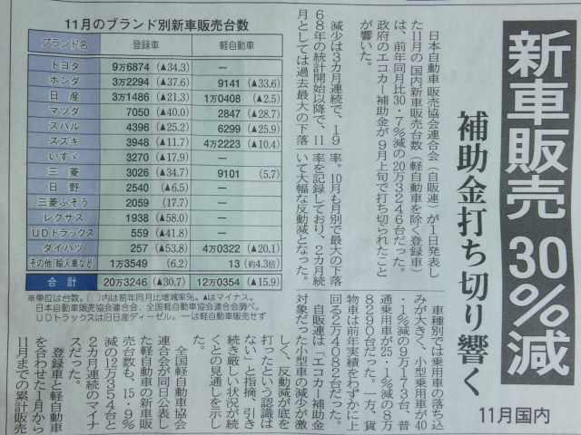 9月に終了したエコカー補助金が打ち切られた事の影響ですが、ある程度の予測はしてましたけど随分な数字ですな(^_^;)