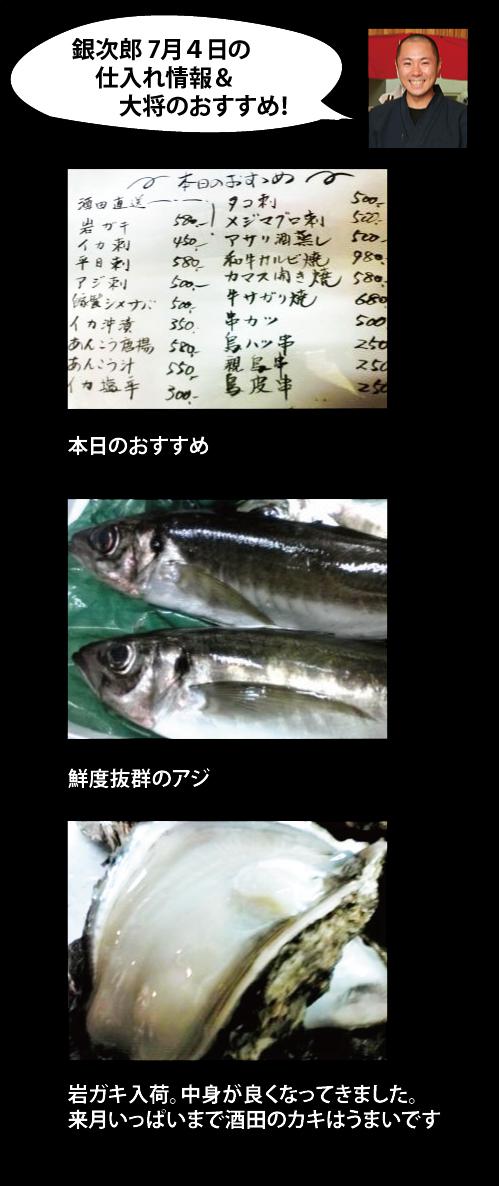▼銀次郎 7月4日の仕入れ情報&本日のおすすめ!