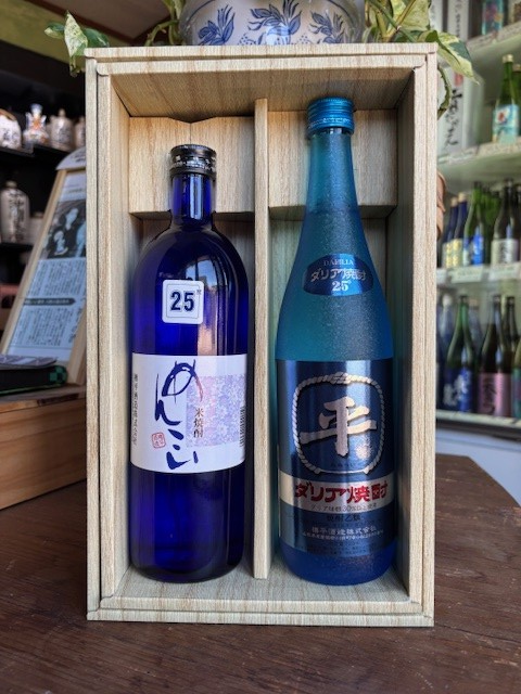 樽平酒造の焼酎セット「ダリア焼酎25度&めんこい25度」です。