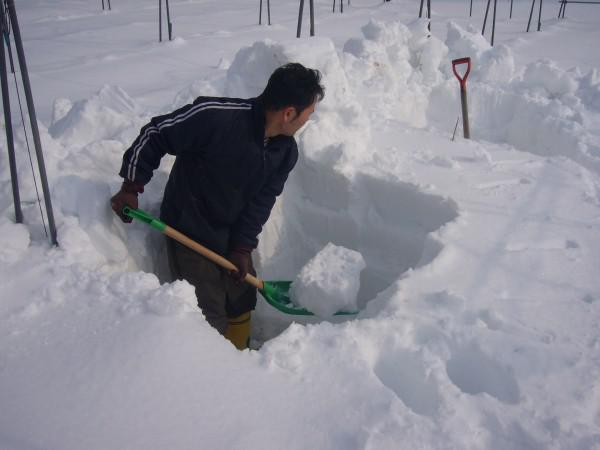こんな雪の中でも野菜たちは、形を崩さず三ヶ月間も