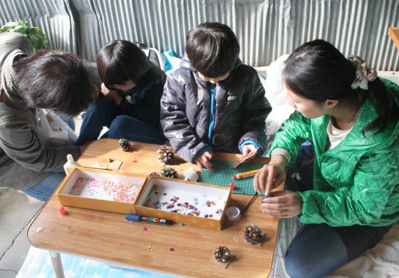 画像は11月開催時のもので、松ぼっくりでミニミニクリスマスツリーを作りました。