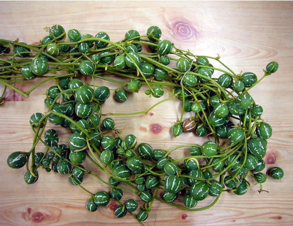 スイカが沢山ついているみたいです。長持ちするしかわいい。3年ぐらい前に植えてみたら暑くなってから(6月ごろかな)芽が出て、大きくなったと思ったら(9月ごろ)山形が涼しくなりだしたころなんだか元気がなくなってきました。あったかい期間が長くないとうまくいかないみたい。山形にはからすうりがお似合いのようです。