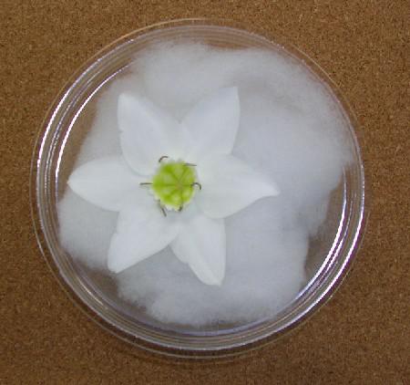 ユーチャリスはとても傷つきやすく厳重に包装されて入荷しますが、コレは特別に厳重です。1輪1輪パックに入って綿でくるまれています。人間より大切に扱われているような。