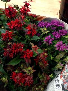 本日はいろいろなものが入荷しました。モナルダ赤と赤紫色です。