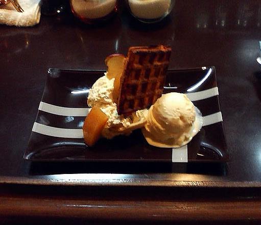 おいしくてクリームだけもくもくと食べていたら、ワッフルと一緒に食べてといわれちゃいました。