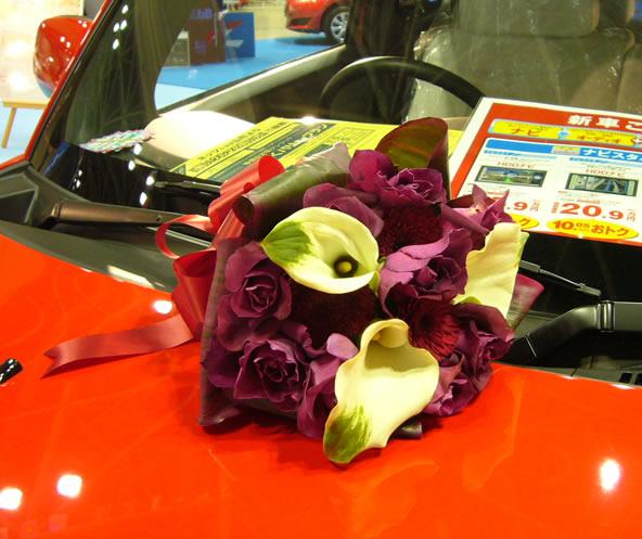 車のイメージに合わせた花束をそれぞれの車におきました。