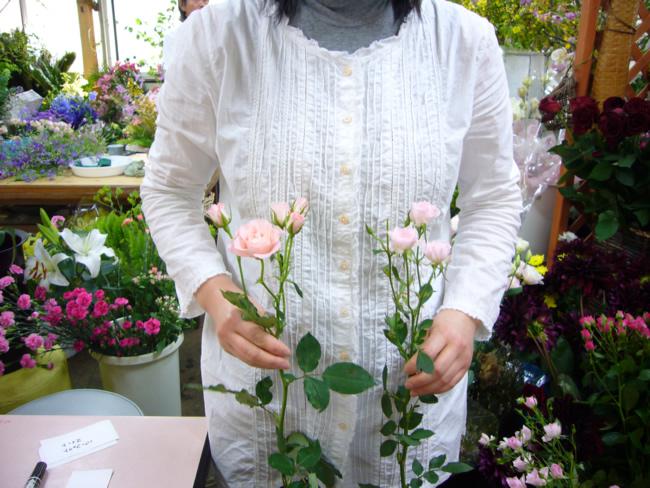こちらは並べてとった写真です。花が大きい方がブライダルピンクです。07-05-02のバラは流通量が多くないので本日は入荷しておりません。写真でうまく花の様子がうつっていますかねー。
