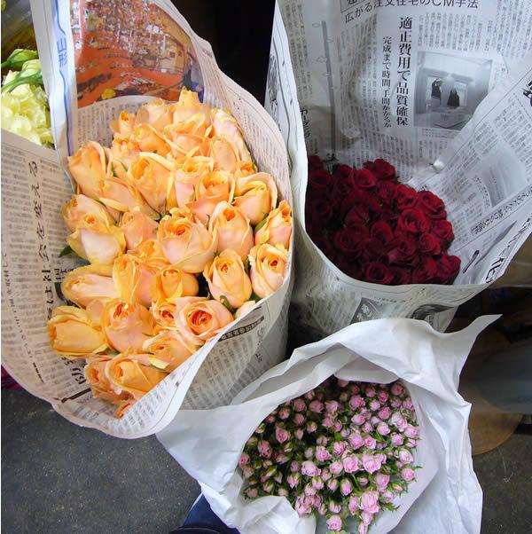 オレンジのオークランド、赤のローテローゼ、ピンクのミニバラパーフェクトスイートです。オークランドとローテローゼは花束にはぴったりです。ミニバラはとても優しい色をしています。お花がとても小さいです。こちらはアレンジようかなー。