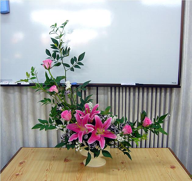 23日は私が教える教室がありました。ちなみに私は初心者向けに教室をしています。今回はクレッセントの2回目です。1回目より花の種類を多くしてつくります。教室で三日月型なんて説明したけど考えたら三日月は欠け具合が反対ですよね・・・。