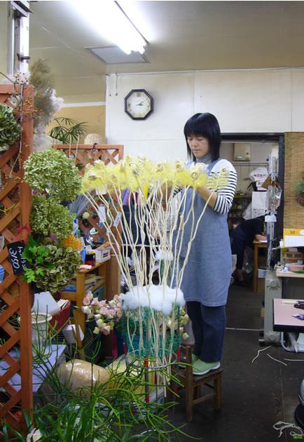 こっちは別の納品さきへ。さらし結びで高さを出してエンゼルヘアをかけてます。