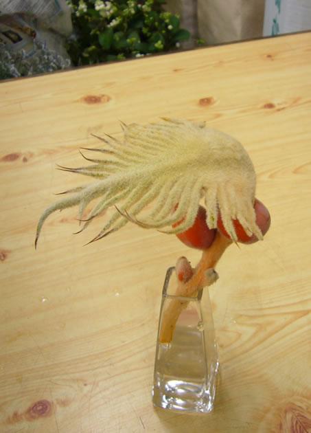 90度ぐらいに曲がってます。確かに天使の羽みたいなかたち。名前は『ゴーストの羽』だけど。一輪挿しにするとこんな感じ。個性的なアレンジ向きでしょうか。ジョアンでは2年ぶりの入荷です。