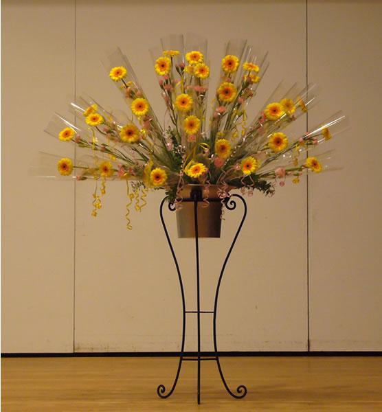 ステージ飾り兼発表会で演奏した方への花束です。発表会が終わったら抜いて皆さんに差し上げます。今回はとってもかわいいガーベラが入荷したのでさっそく使ってみました。