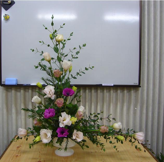今日はエルシェイプの研究科。今日は素敵な花材が入荷したのでさっそく教材に。花材は前回の復習のようなものですねー。トルコキキョウ、バラ(オールドダッチ)、アネモネ、ユーカリ、メラリューカ。今の時期にアネモネなんてめずらしいです。しかもミニミニでかわいい!