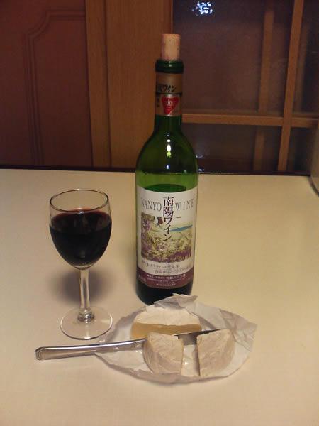 南陽ワインとチーズでリラックスタイム。チーズはブリー。ワインは友人からいただいた金渓ワインの南陽ワイン。うーん。おいしい。このために生きてるんだなー!