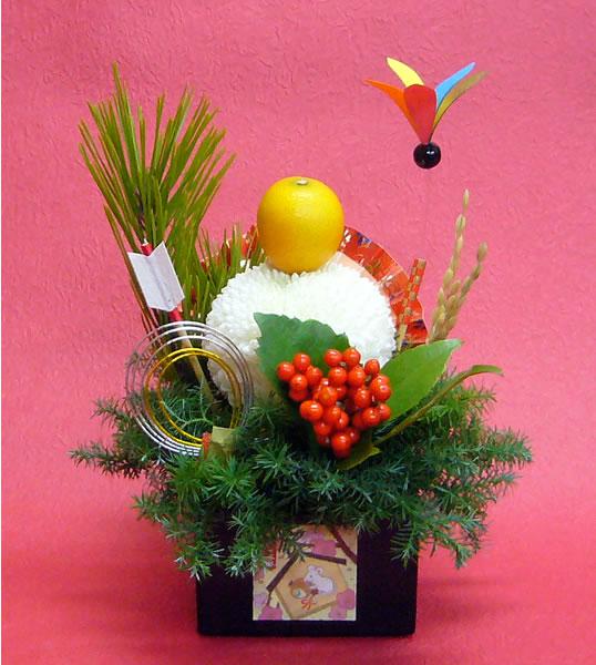 でも〜、今年は松市が11日、千両市は18日。現物はまだお店にないのだー。画像は昨年の干支のねずみシール付花鏡餅です。