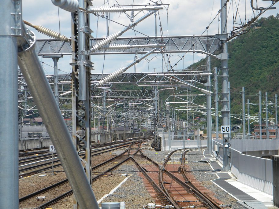 25年5月28日 福島駅11番線アプローチ線側(デジカメで望遠撮影) 3月1日時点で張られていなかった、福島駅11番線側の架線が張ってある事を 確認しました。 (撮影より投稿までだいぶ経過してしまいました。)