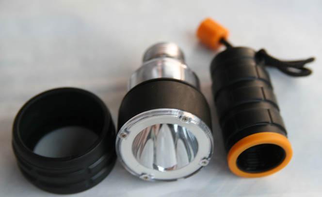 ヘッド部分の透明樹脂は小さい金属のねじ止めになっている。