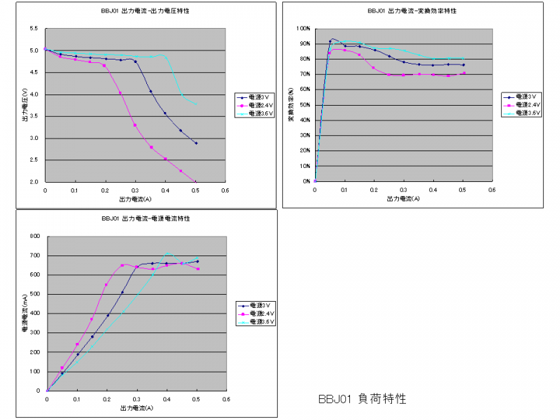 EP-024CHAでは電圧が徐々に落ちる特性であったが、BBJ01は