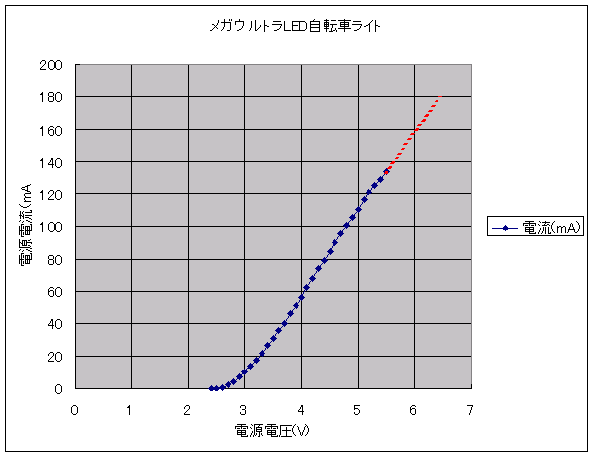 ▼メガウルトラLED自転車ライト>電圧-電流特性