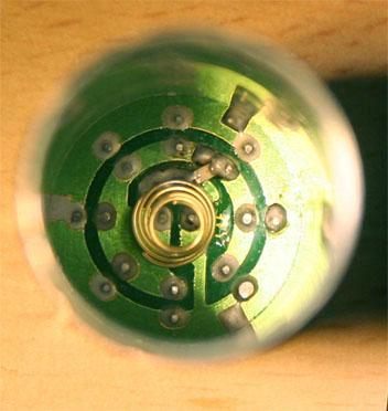基板上に抵抗らしきものが見えますが、裏返しで実装されているのか白く見え、抵抗値表示は確認出来ませんでした。