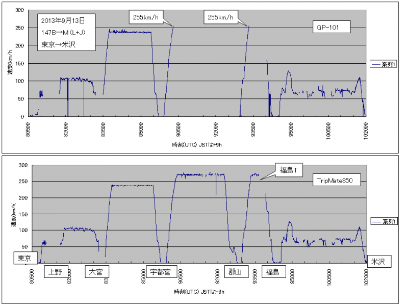 ▼GPSロガー>GP-101>新幹線で試してみた2