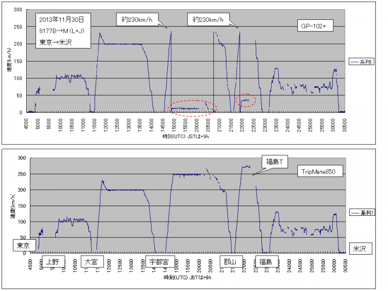 LCDの速度表示も他のLCD付きロガーの値と同等だし、トンネル通過後の再捕捉も問題なく、さすがはSiRFチップ。安心して使えるな、と感じがしたのですが・・・