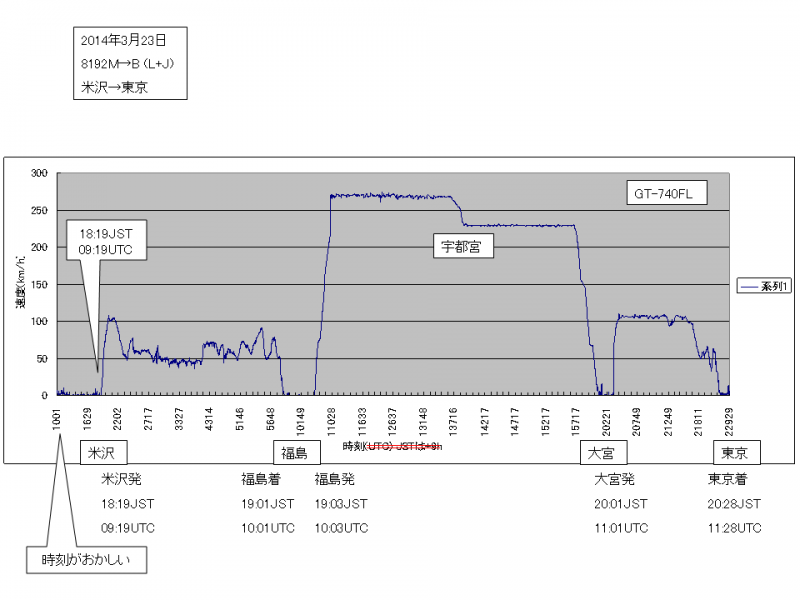 乗車したのは臨時「つばさ」ですが、この列車は福島〜大宮間ノンストップで全区間最高速度をほぼ維持(福島〜宇都宮間約270km/h,宇都宮〜大宮間約240km/h)して運転されているようです。