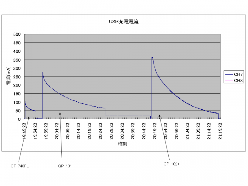 「GP-101」は充電完了後も微小な電流が流れ続けるという興味深い特性が見られます。