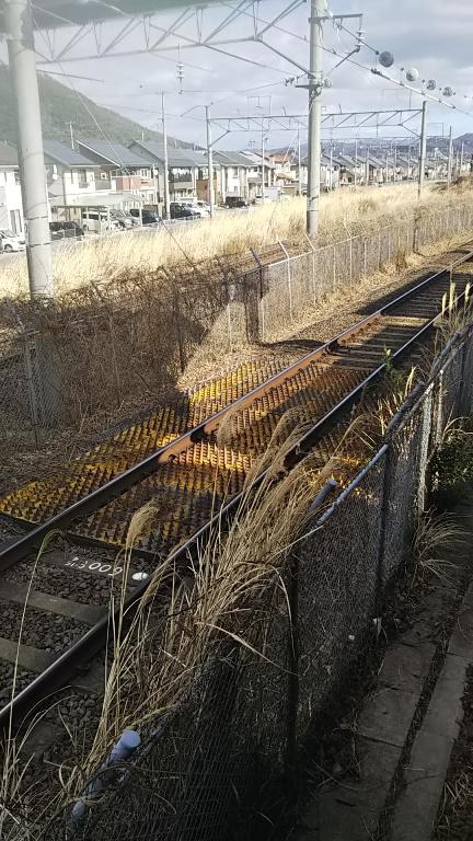 この先が「新幹線区間」であり、人の侵入を防止するもの。