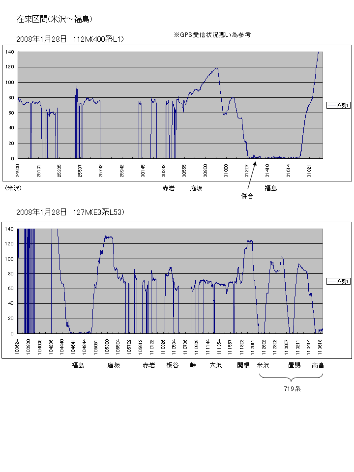127号のほうは米沢〜高畠間のローカル電車のデータが一緒に付いてます。(この区間、「つばさ」なら最高130km/h出せるのですが・・・)