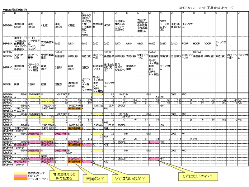 またGPGLLの測位時刻データの末尾にdの文字が・・・